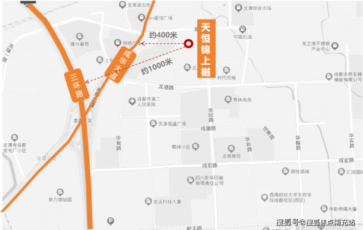 天恒·锦上樾与三环距离示意