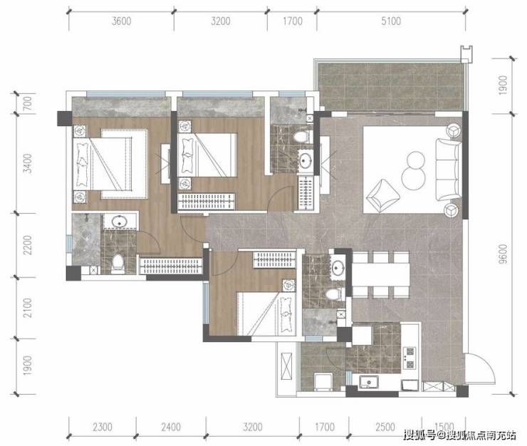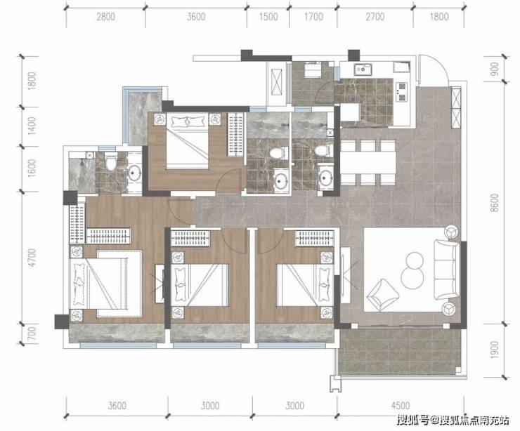A1-建面约132㎡ 三室两厅三卫(双套房)