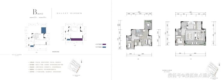 叠拼B户型(上叠)) 建面约127㎡,单层70-75平,露台+屋顶约70平。