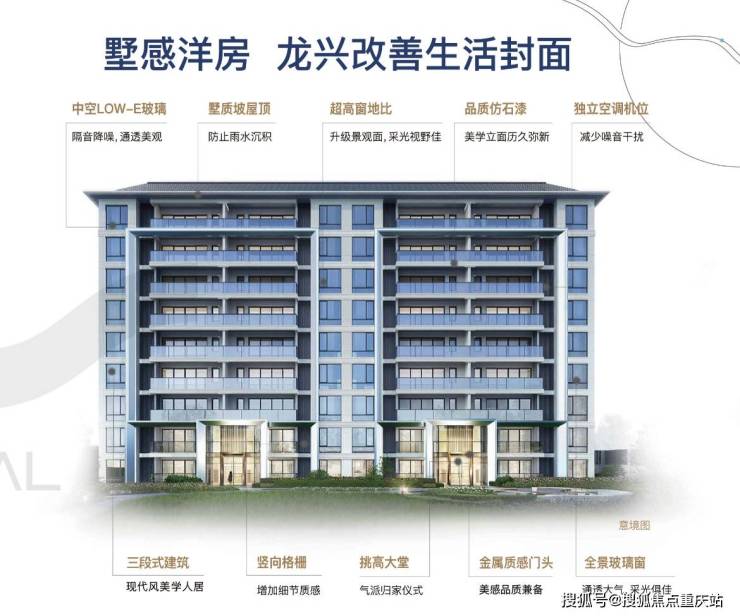龙兴正核天街旁,纯板式1梯2户,约12米大面宽,约6.8米观景阳台,3D退台景观,天街旁的公园洋房!