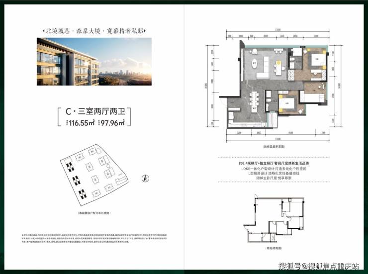 建面116㎡ 套内97㎡ 舒阔横厅三房双卫