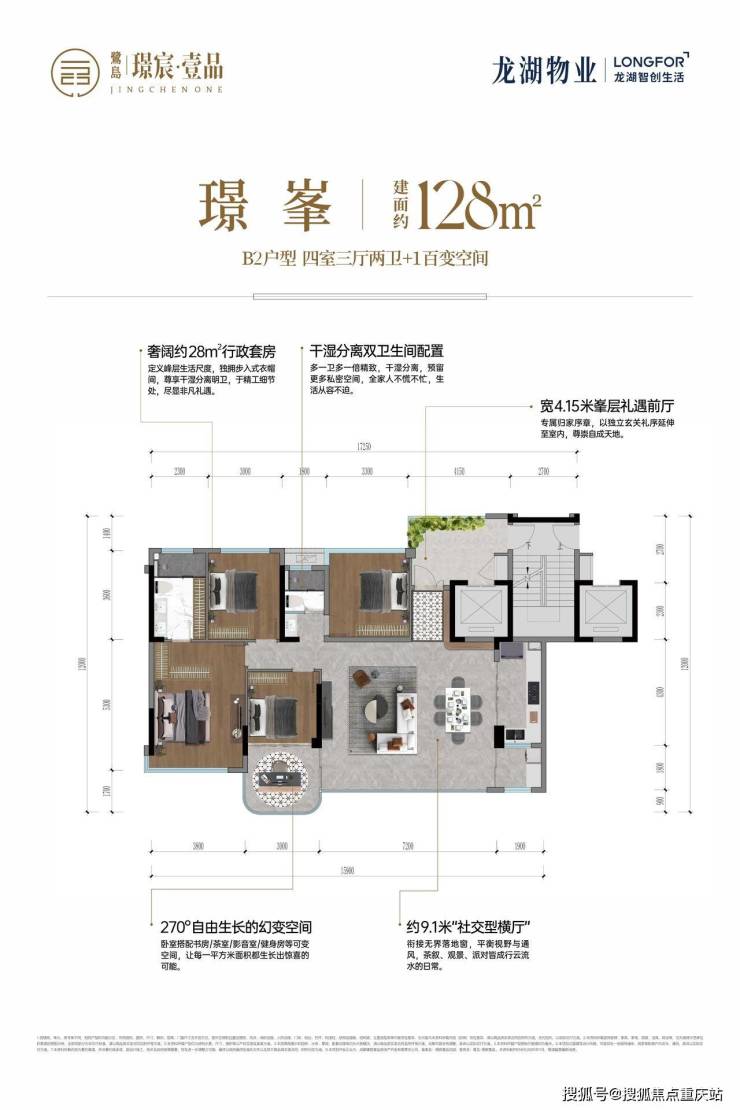 约128㎡四房三厅双卫+1幻变空间