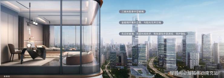 约360°无墙感外立面,全空间环幕视野。大面积配置三玻夹胶单中空玻璃,隔绝噪音保护隐私