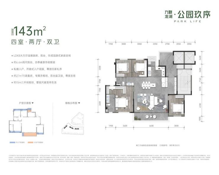 户型面积:建面:129-143㎡ 4室2厅2卫