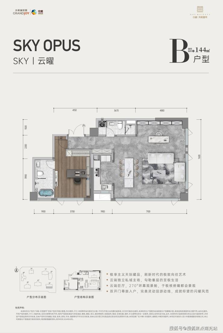 2T4户,共计100套,120㎡/144㎡各50套,2房2卫设置;144㎡户型为转角客厅,LDK一体化设计。