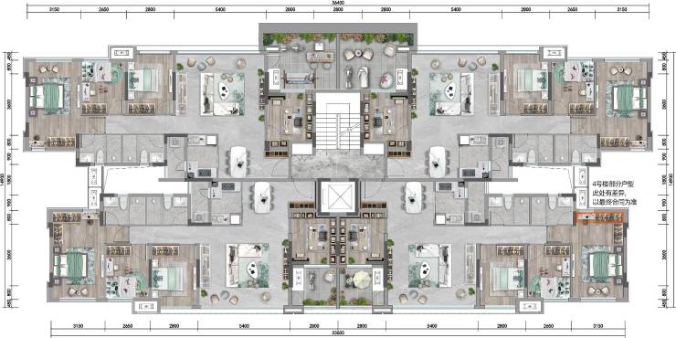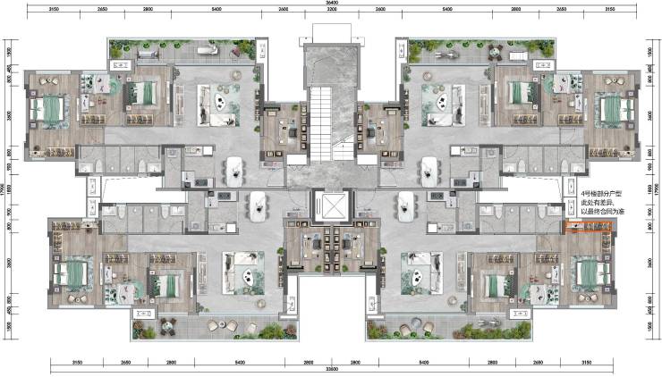 ★ 独立空中院落(3F) / 建面约 99㎡ 四室两厅两卫
