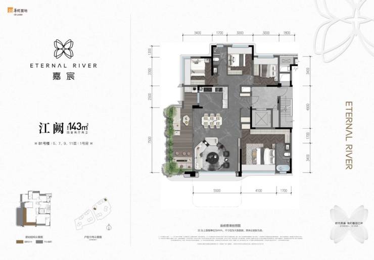建面约143平套四