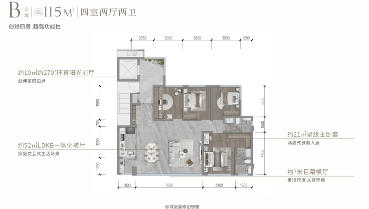 建面约115㎡四房两厅两卫