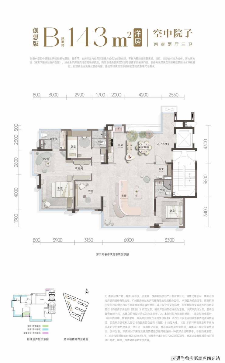 143㎡·四房两厅三卫·空中院子