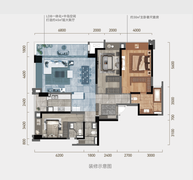 F户型 四室两厅三卫 套内约169㎡ 建面约209㎡