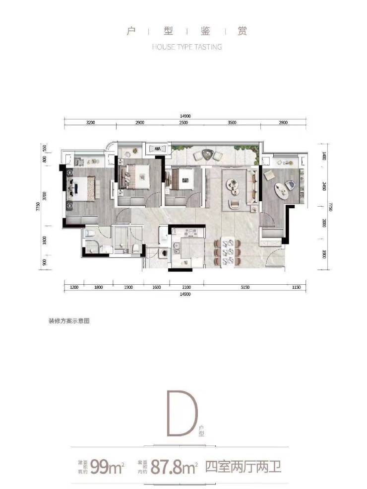建面99㎡,套内87.8㎡