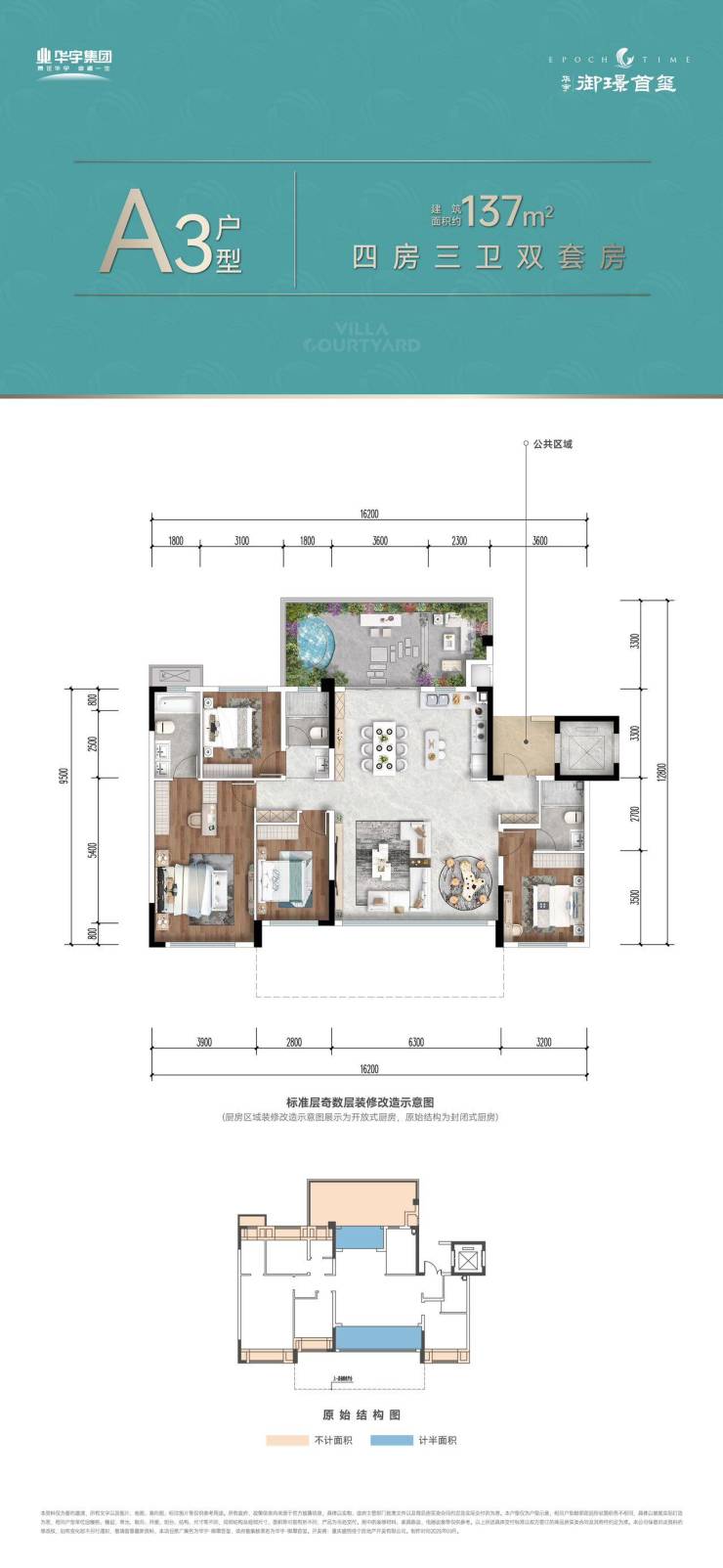 得房率120%,建面137平实得面积约 165 ㎡,