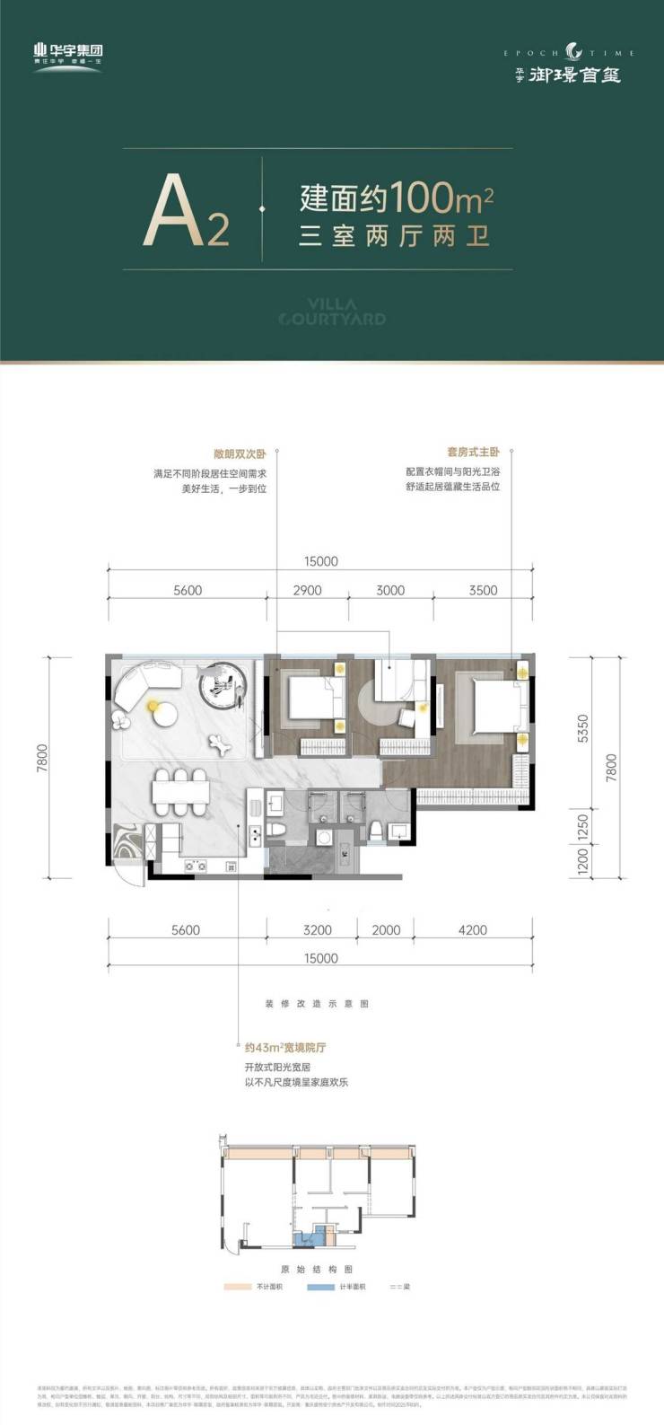 ③神仙户型100%得房率,43.6㎡大方厅设计,25.8㎡墅级主卧套(唯一独立衣帽间)