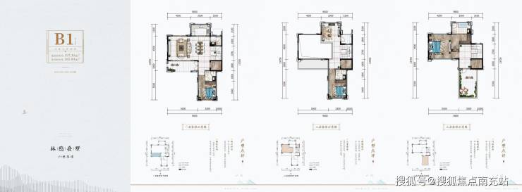 【户型 合院 B1】套内面积约185平米建筑面积约197平米单层面积约90平米花园面积约80-130平米总价约235-240万