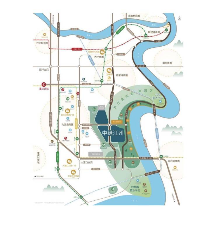 长江之畔,艺湾为芯。中国绿发落子重庆大渡口九宫庙义渡路,打造央企标杆低密滨江社区 —— 中绿江州。作为长江文化艺术湾区的健康人居范本,项目集洋楼、洋房于一体,以绿色健康理念与精装标准,重新定义重庆两江四岸的理想生活封面。