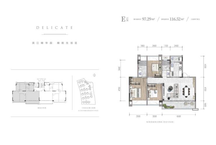 建面约99平套三