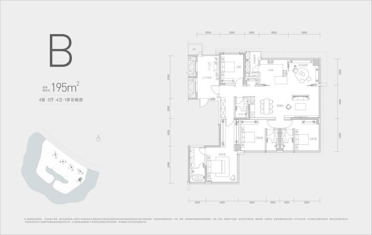 小面积最强功能性,可定制5房或4房+独立书房,并且其中包含3套房