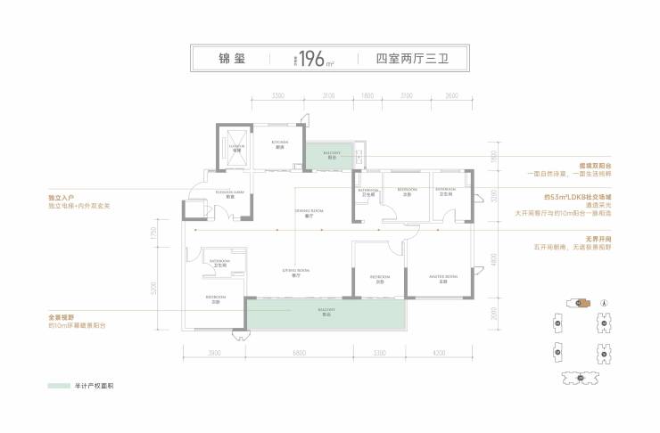 •锦玺--建面约196㎡(四室两厅三卫)