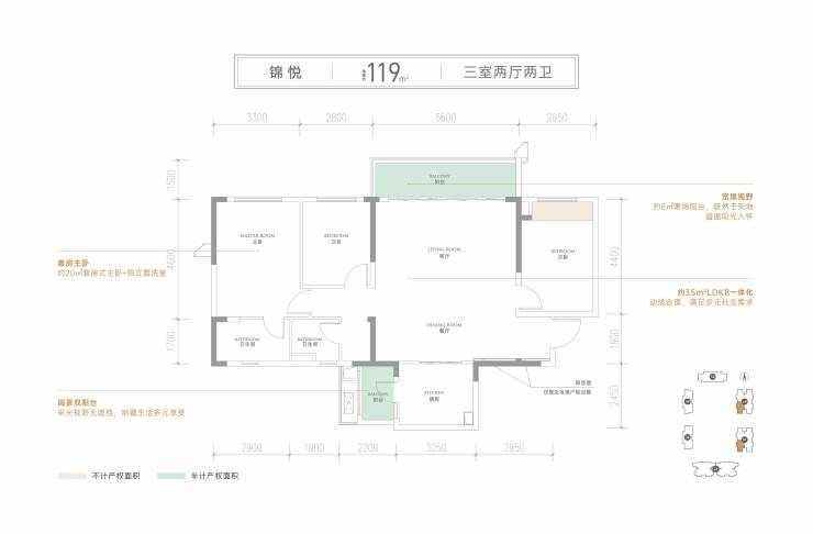 •锦悦--建面约119㎡(三室两厅两卫)