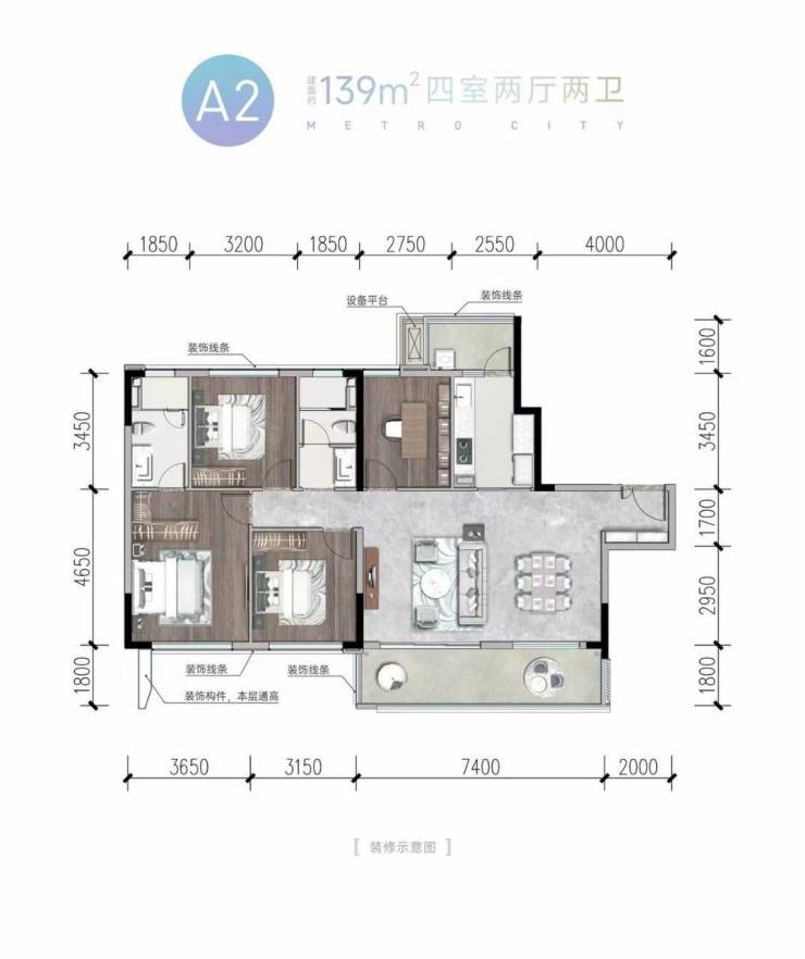 洋房1T2户总高7-9层133四室两厅两卫(精装)