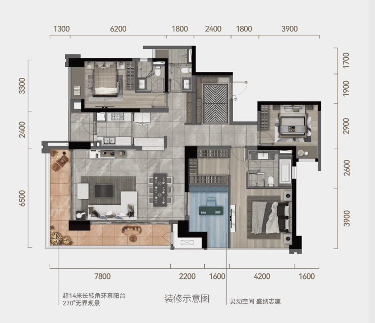 F户型 四室两厅三卫 套内约169㎡ 建面约209㎡