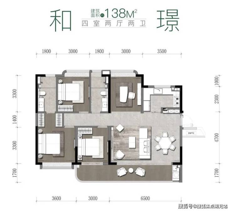 餐客厅一体化设计,与9.5米大尺寸景观阳台无缝对接,空间感和视觉效果增强。