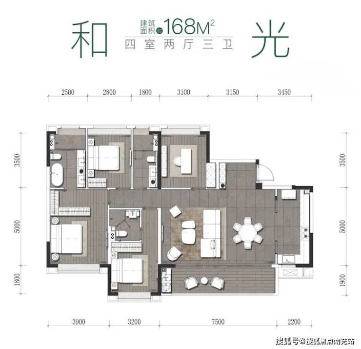 7栋是1梯2户,共8层,皆为168㎡的板式洋房。