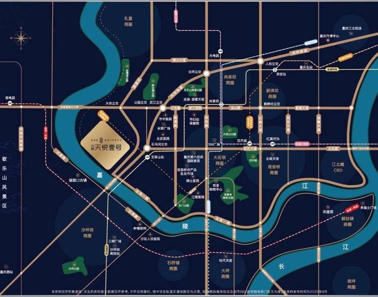 交通:一环三桥三横四纵(一环:内环高速 三桥:双碑嘉陵江-大学城 高家花园大桥-沙坪坝 石门大桥-石桥铺)三横:松石头大道-江安路-武江西路-北滨路 四纵:宏帆路 -盘溪路-余松路-红锦大道 双轨:环线玉带山站(2公里)四号线西延伸顺水寺公园站(项目旁一百米左右 预计2025通车)