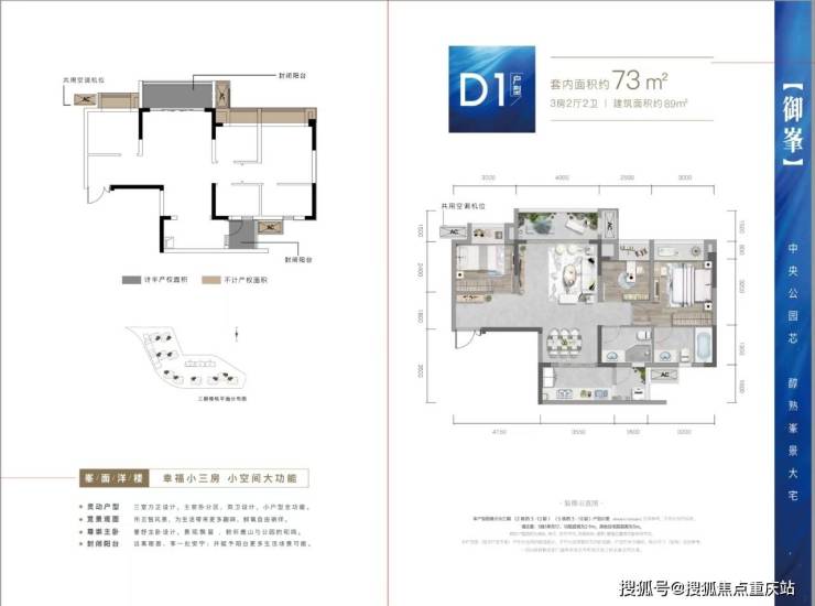 建面约89平套三