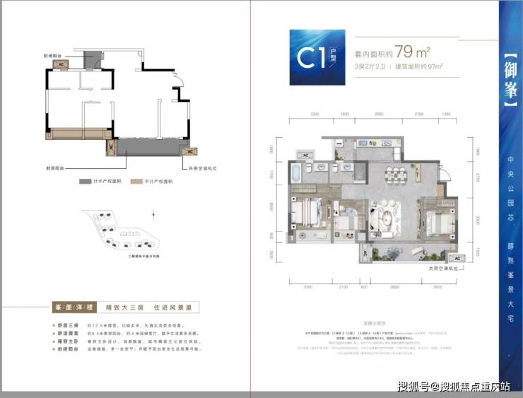 建面约97平套三