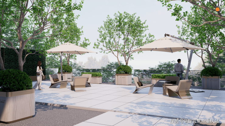 在空中平台花园空间,天空浮屿的灵感来自三亚艾迪逊酒店,将公园和城市景观轻松纳入视野。沙发对坐采取哑光皮艺与金属对撞,营造雅致精奢之感。