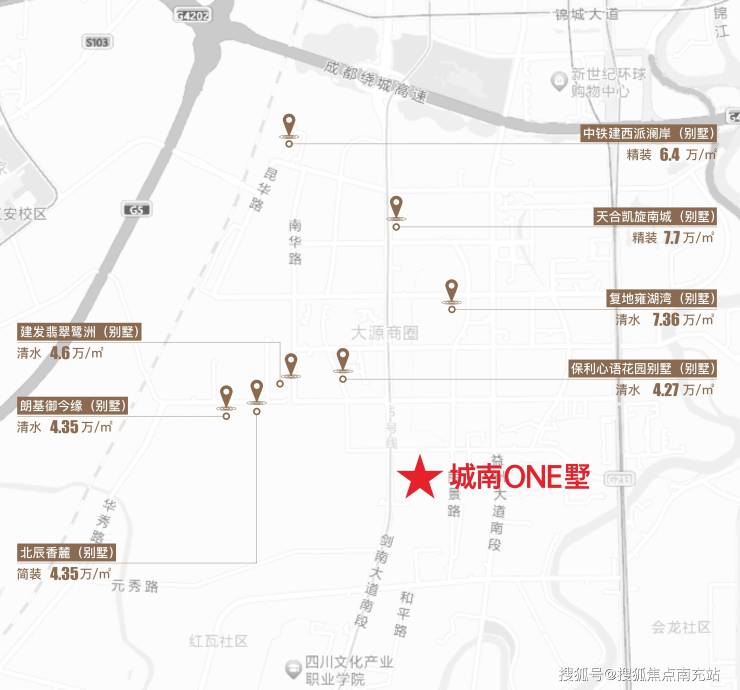 1、土地稀缺:2015-2023年,板块土地供给仅8块宗地,今年5月出拍土地,清水限价36000元/㎡,寸土寸金板块,清水限价刷新成都新高度。顶级资源配置,物业价值遥遥领先,大源板块二手别墅市价4万/㎡起。