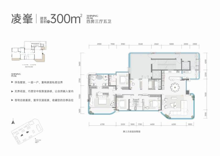 建面约300㎡户型更以“四面皆景”设计,将城市天际线与园林景观纳入同一视野。