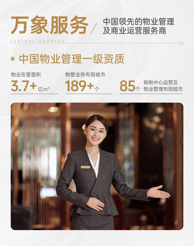 华润万象服务,“中国物业管理综合实力百强企业”,作为华润万象生活物管服务品牌,基于华润置地好房子战略,进一步凝练“好服务”客户价值范式。聚焦社区生活空间,全周期资产守护延长建筑生命周期,全维度生活美学重构空间服务界面,全龄段友邻能量场滋养社区情感共同体。