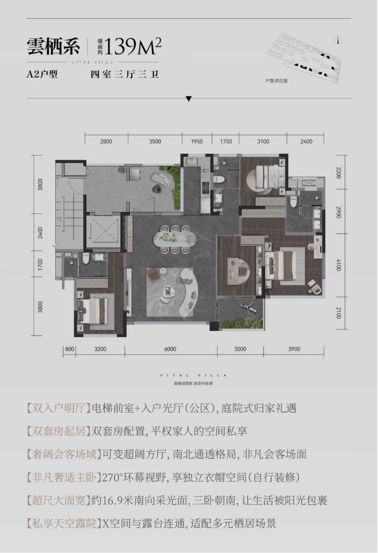 建面约139平套四