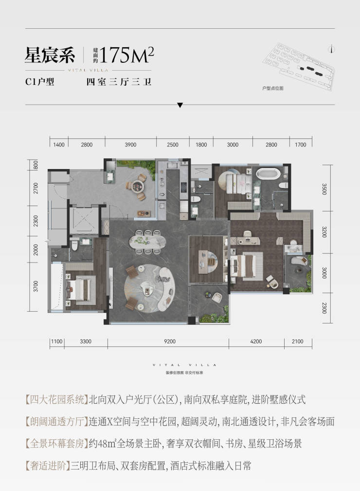建面约175平套四
